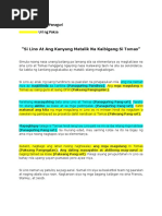 Malaki ang pera na kakailanganin para sa kanyang operasyon kung kayat nangutang si Aling Meding sa mga kapwa tindera nito at sa kanilang mga kamag-anak. Nabundol ng trak ang kotseng sinasakyan niya Saan nangyari ito ang tanong ko. May kaisa isang anak na lalaki si ingkong gaton si.